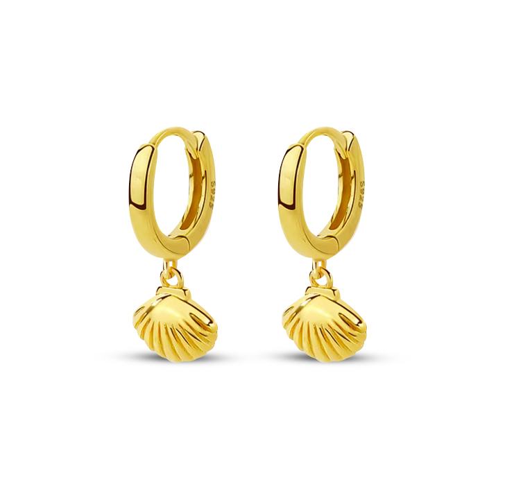 The Leylani Earrings showcase exquisite craftsmanship with 18k gold plating over sterling silver base. Designed in a distinctive clam shell motif, these earrings deliver premium quality and sophisticated coastal aesthetics. The combination of precious metals ensures durability while maintaining a luxurious appearance suitable for discerning jewelry collectors.